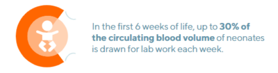 Such frequent laboratory testing can cause significant blood loss for infants in the NICU. Research has shown that very low birth weight (VLBW) infants undergo an average of nearly 57 blood gas measurements per week,² and another found that up to 30% of a neonate’s circulating blood volume could be drawn for lab work each week during their first six weeks of life.³ While it is vital to keep a close eye on these patients, the blood loss from this frequent testing can pose serious risks, including anemia of prematurity and the potential need for blood transfusions.